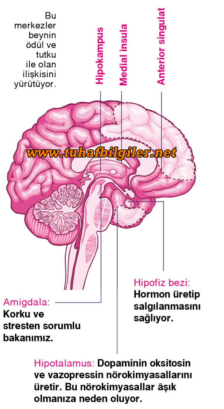 * Beynin romantik lopunda faaliyet arttıkça, stres salgılayan amigdala düşüyor.